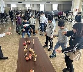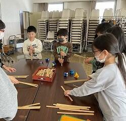 先日、3年生が市民会館でことぶき大学のみなさんに、昔の遊びや暮らしの様子などについて教えていただきました。