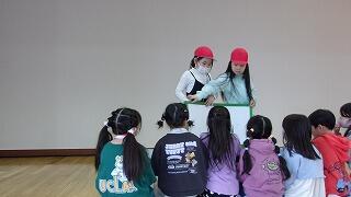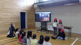 本校の1年生が園児に向けて、学校のことを説明したり、ゲームをしたりと、一緒に活動しました。
