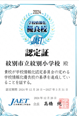 本校は、2024年度の学校 日本教育工学協会「学校情報化優良校」 に認定されました。