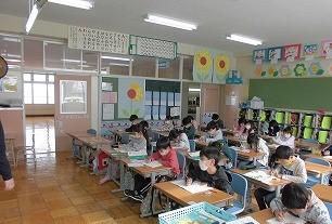 1年生の教室におじゃましましたが、みんな真剣な目でみていました。